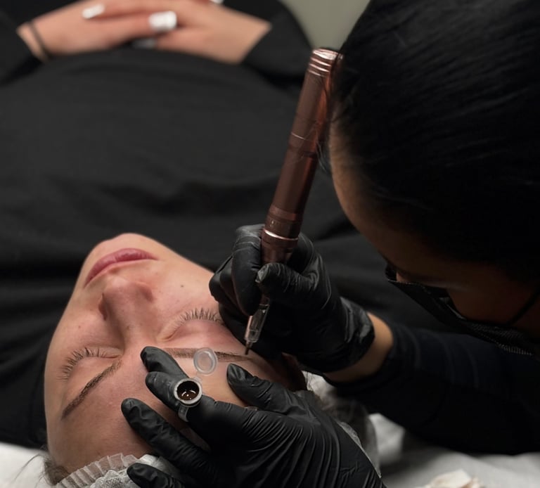 Apprentissage de la technique micro-shading, maquillage semi-permanent des sourcils effet poudré.